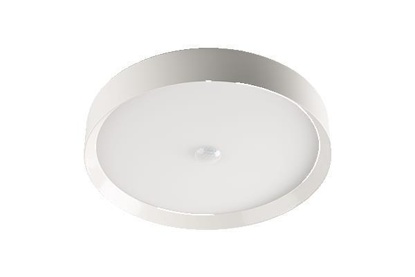 Die Loxone LED Ceiling Light RGBW Air ist eine Deckenleuchte mit integriertem Bewegungsmelder und Helligkeitssensor, die Farblicht und warmweißes Licht kombiniert. Die Ansteuerung und das Dimmen erfolgen direkt über die Air Schnittstelle.
