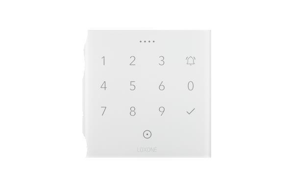 Der Loxone NFC Code Touch for Nano ist eine Zutrittslösung mit NFC-Leser und beleuchtetem Zahlenfeld auf einer Glasfront zum Aufstecken auf eine Nano IO Air.
